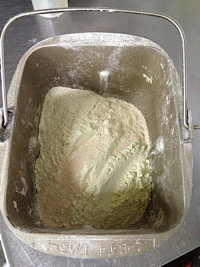 ホームベーカリー用緑茶食パンミックス粉(1斤用)を使って、ミキシングと発酵をホームベーカリー(パン焼き器)で行い、その後は手作りする方法の紹介です。幾分かのパン知識を要しますがなれてくれば簡単にできます。美味しさを求めて挑戦してください。